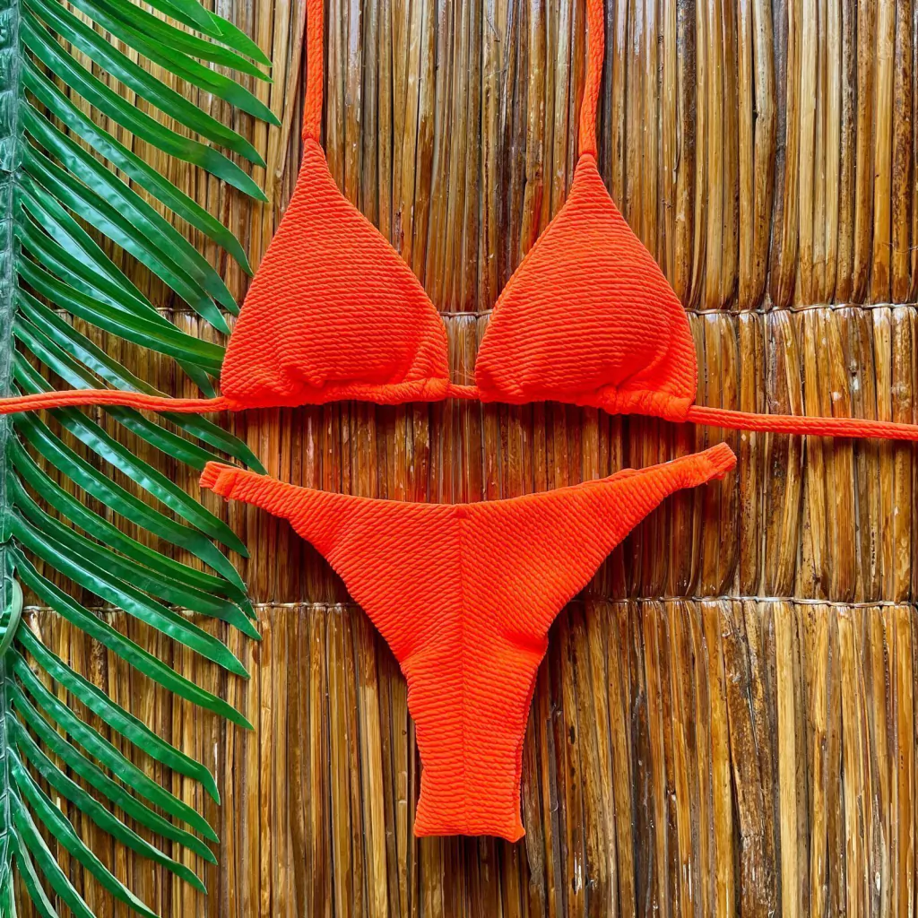 Possui tecido texturizado, bojo removível e calcinha regulável.