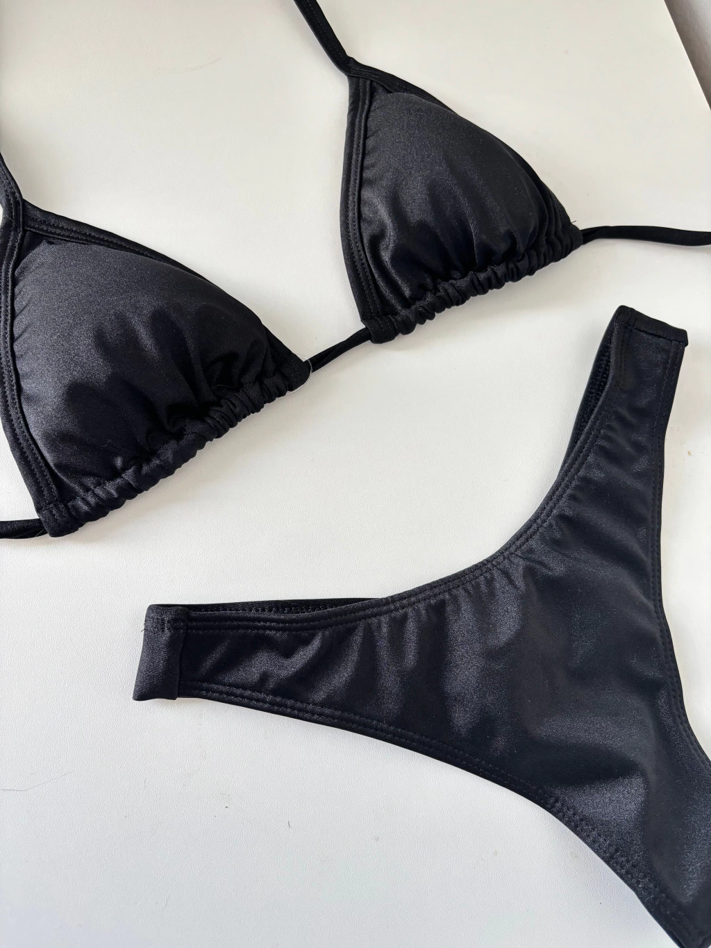 Possui tecido poliamida com leve brilho acetinado, com bojo removível e calcinha fio duplo.