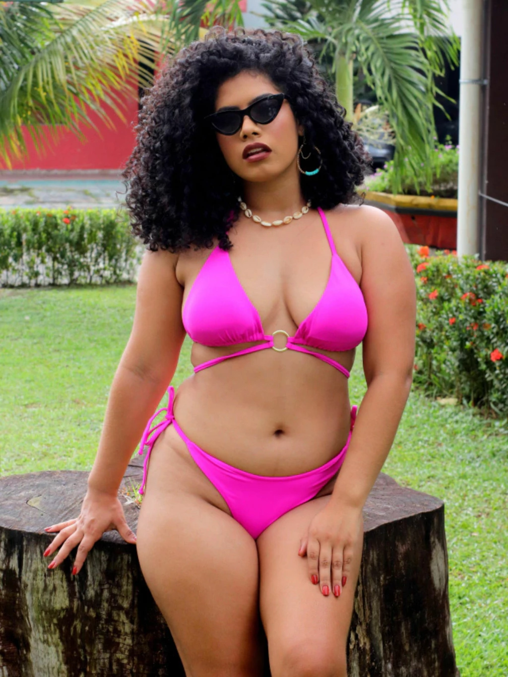 Possui bojo removível, tecido poliamida, calcinha fio duplo.